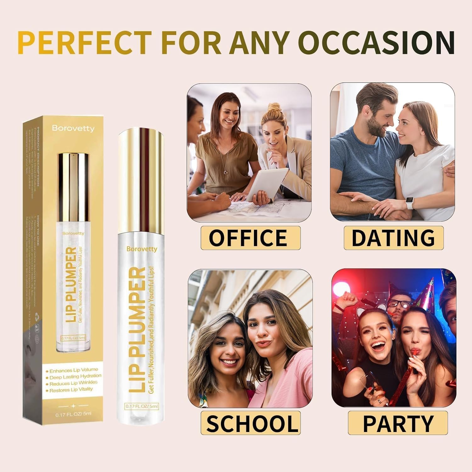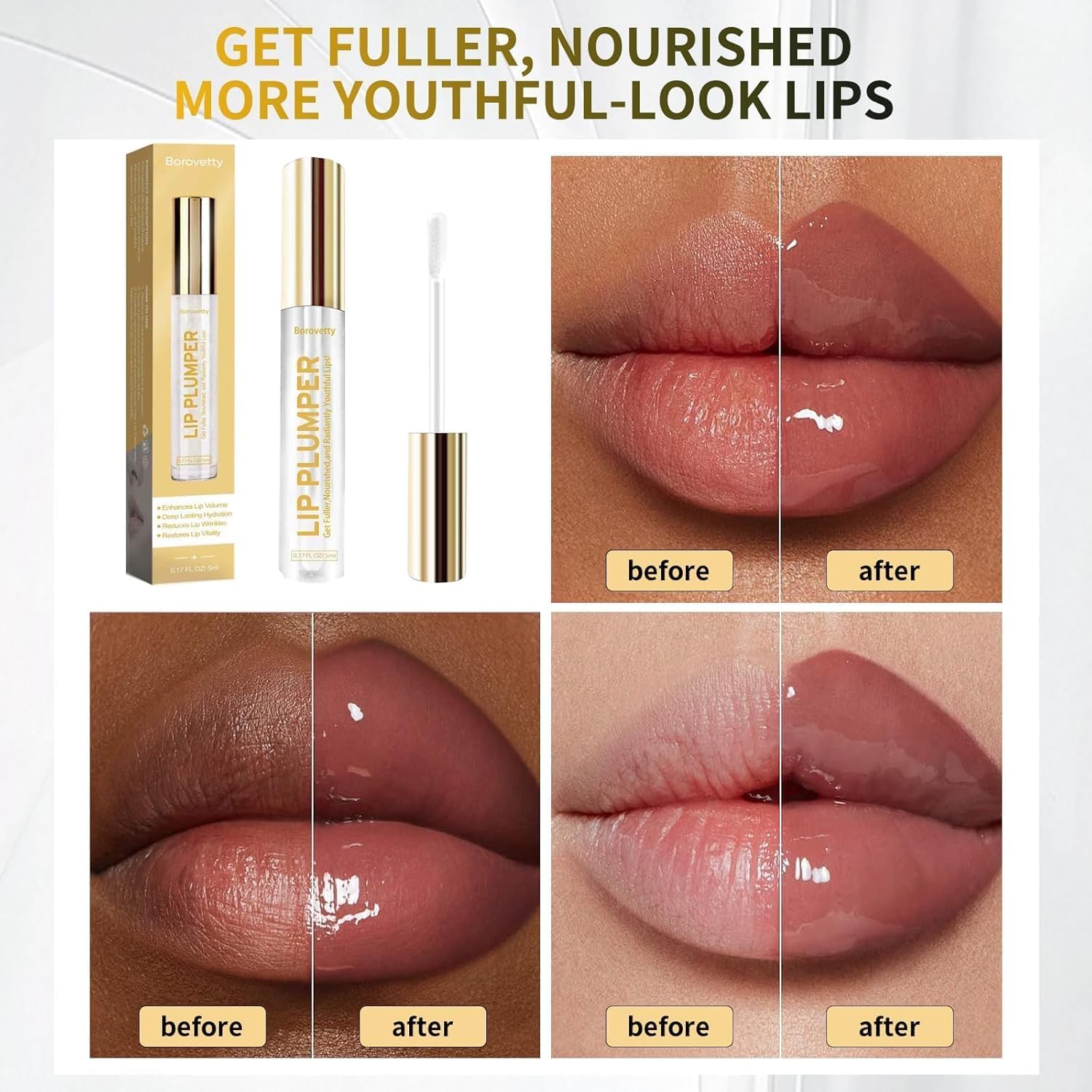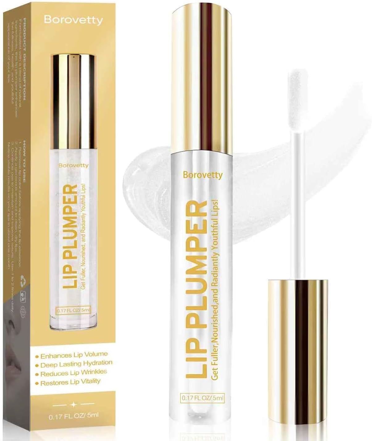 Lip Plumper Gloss, Clear Plumping Lip Gloss for Fuller, Hydrated Lips, Nourishes & Smooths Fine Lines.